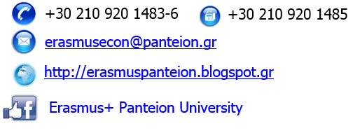 Κούρας Γεώργιος (Υπεύθυνος Οικονομικής Διαχείρισης)o Τηλ.: +30 210 920 1484o Φαξ: +30 210 920 1485o e-mail: erasmusecon@panteion.gr